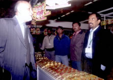Mr, Aziz Ahmed High Commisioner of Pakistan Embassy at India, visiting the stall of Laziza at IITF-2005, New Delhi India during November 2005.